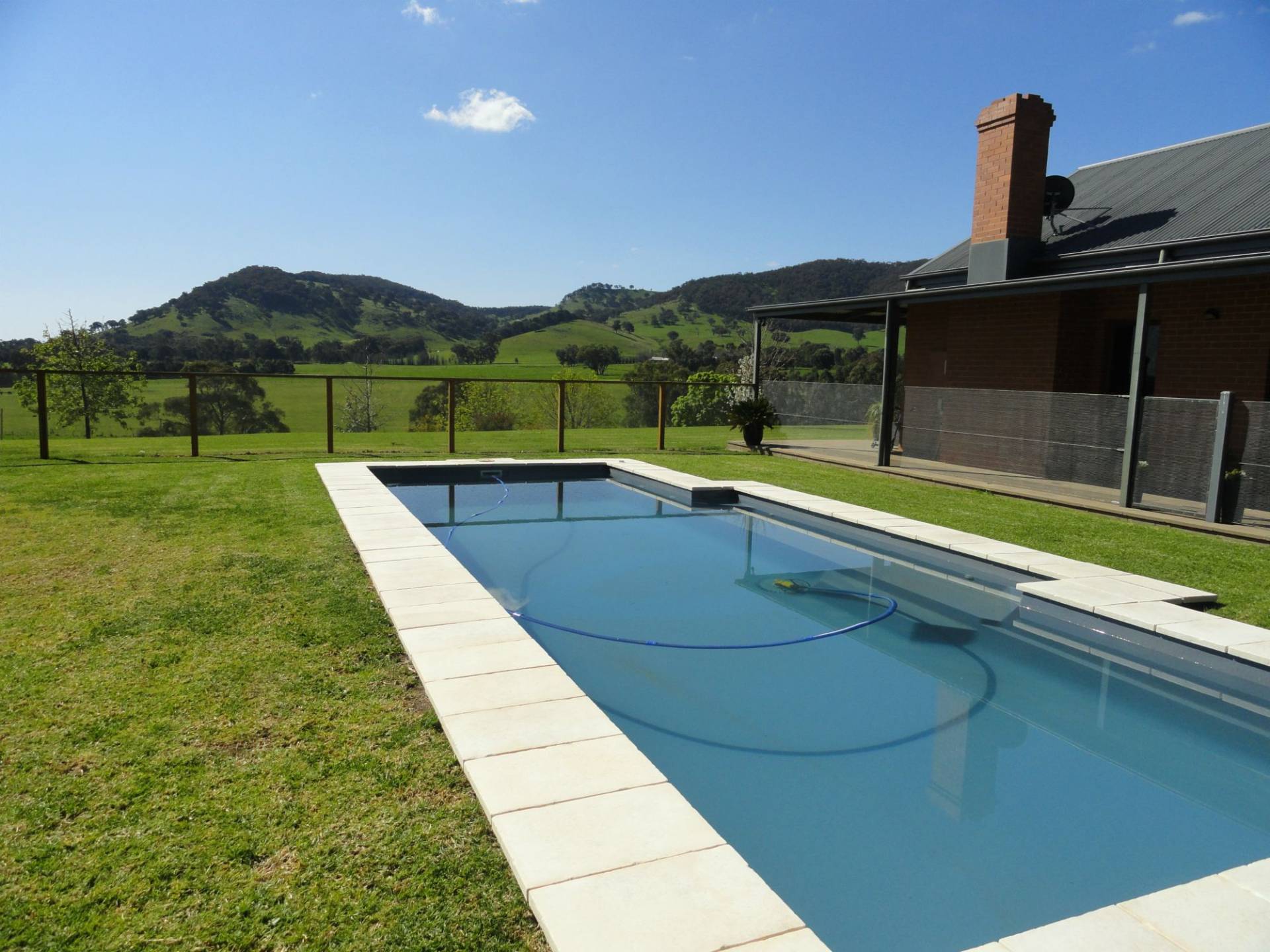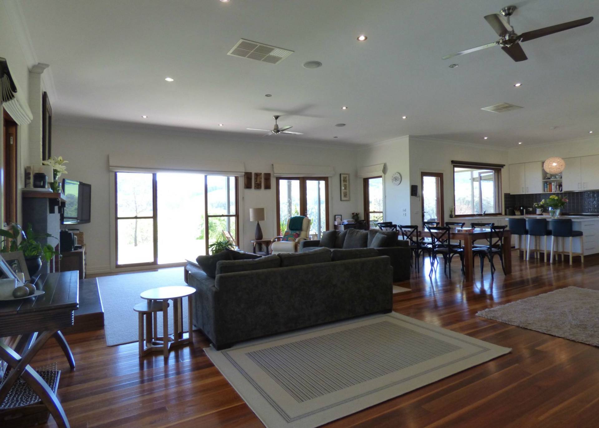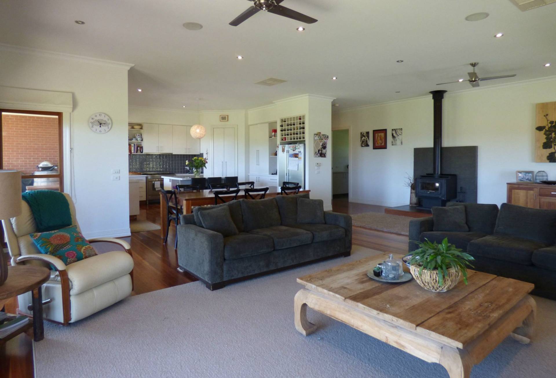- Spotted gum flooring, slow combustion heating, open fire place & evaporative cooling.