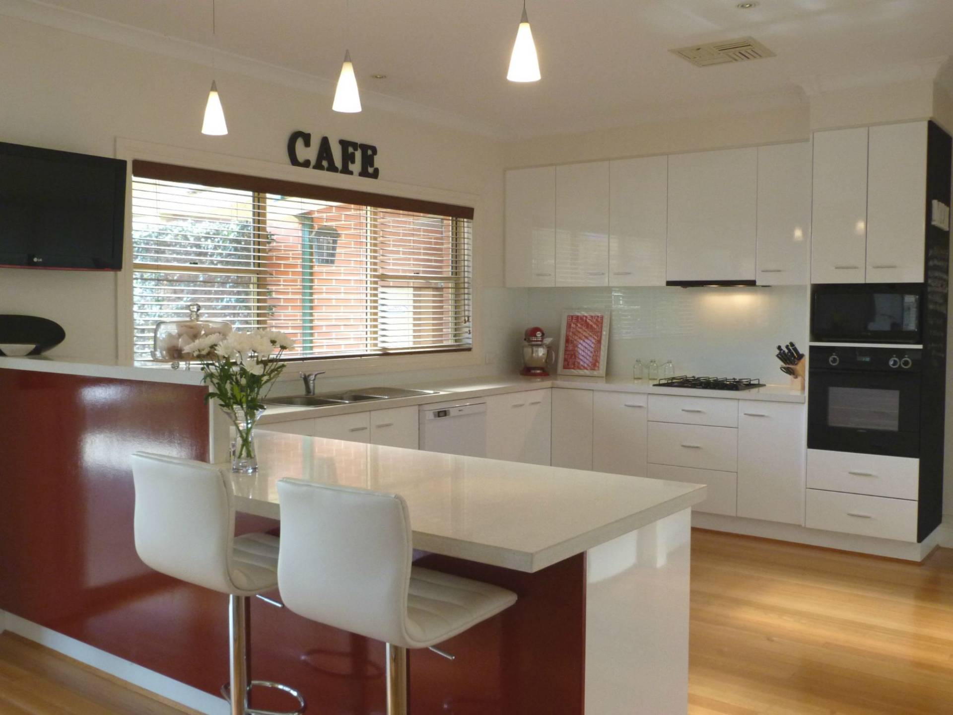 - A fabulous kitchen with expansive granite benchtops, cupboards & drawers, electric & gas cooking, large wall pantry & a dishwasher.