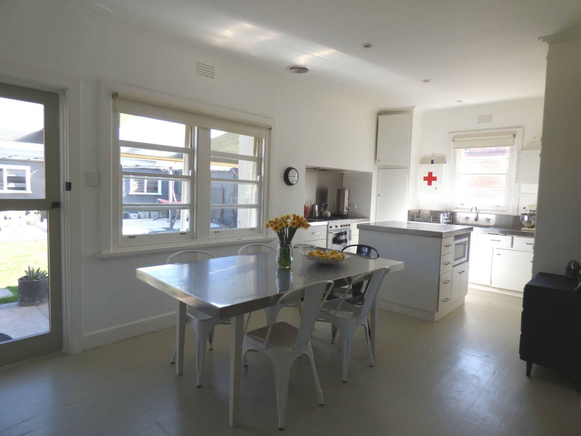 - Ultra cool kitchen with stainless steel bench tops, 'SMEG' electric/gas cooker & dishwasher.