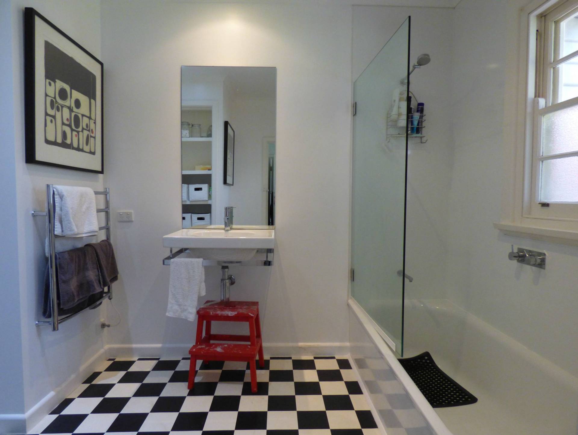 - Sizable bathroom with ample storage.