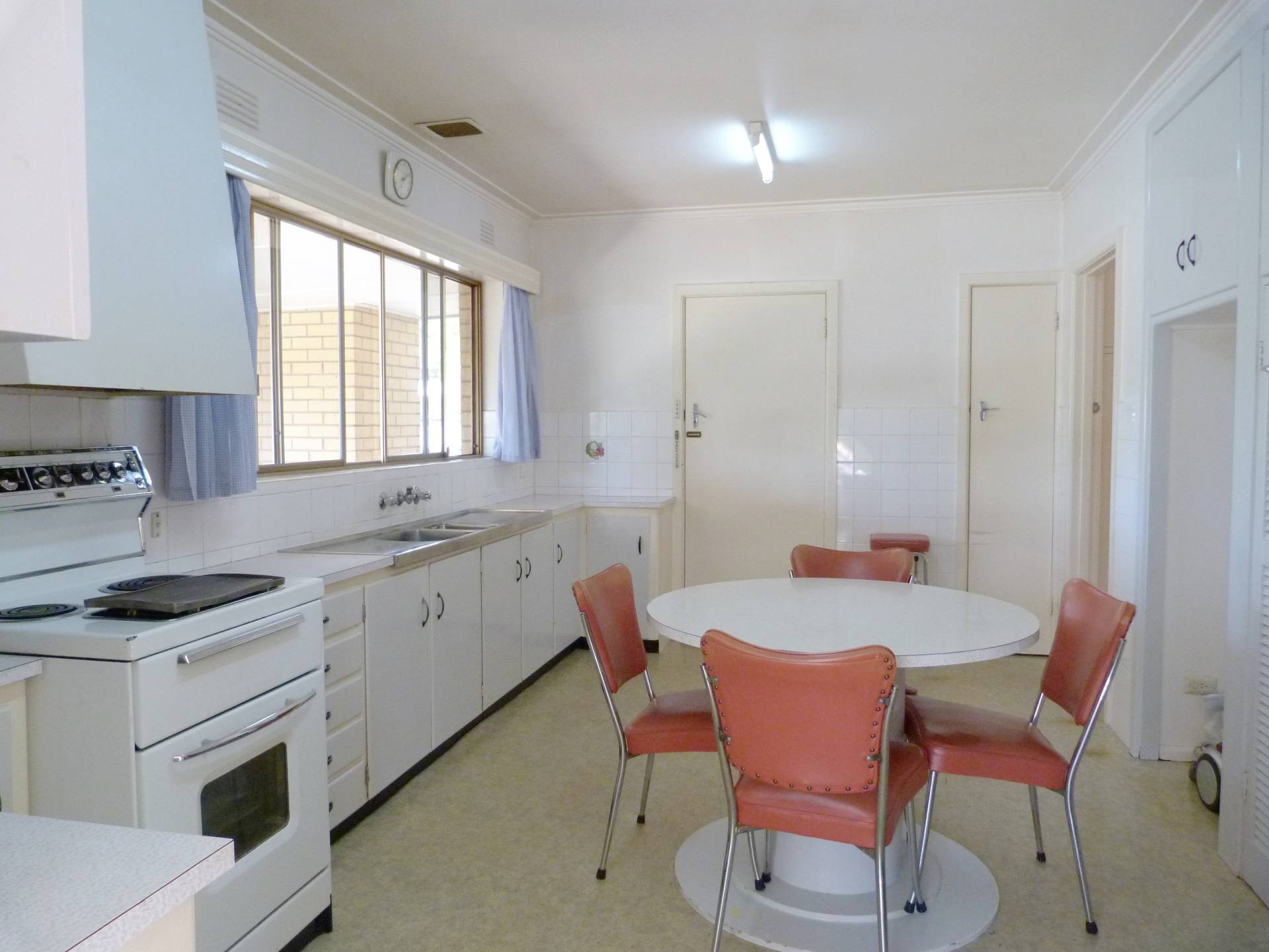 • LARGE KITCHEN WITH ELECTRIC STOVE, PANTRY & STORAGE.