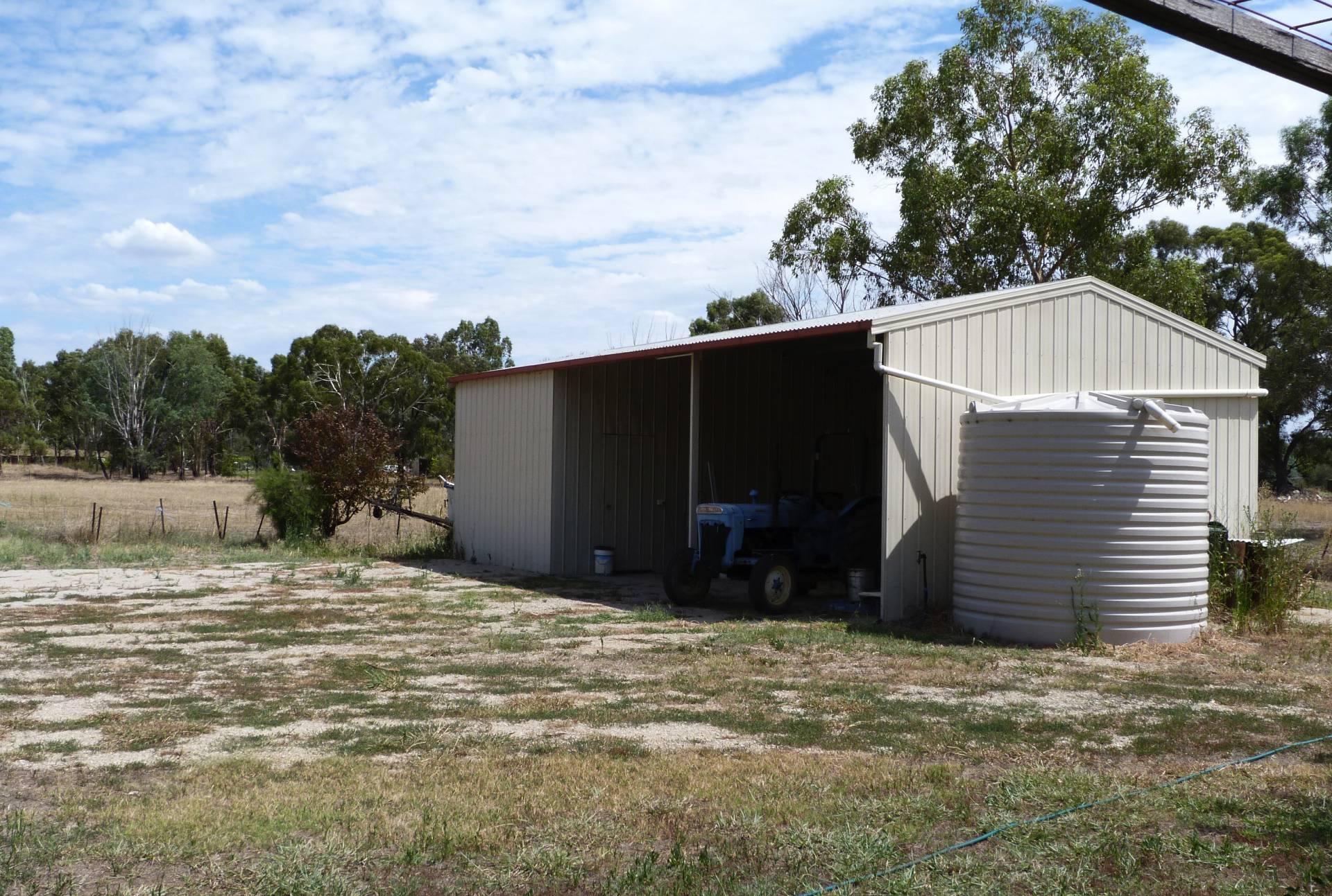 Rainwater tank storage, secure fencing, 2 meg. S & D water right, a small dam and a 3 bay shed complete the picture.