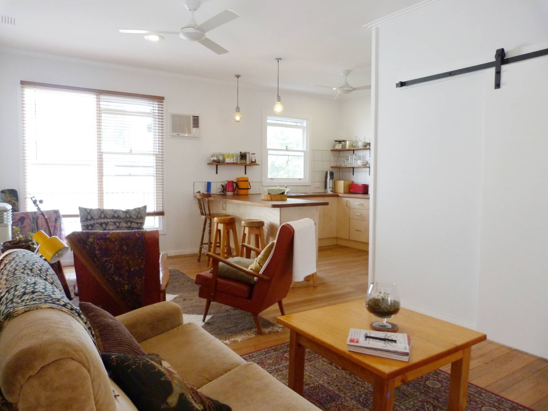 • THE EXTERNAL WALLS ARE CEMENT RENDER, ALL FLOOR ARE TAS OAK AND THE USE OF NATURAL TIMBER FLOWS INTO THE KITCHEN.