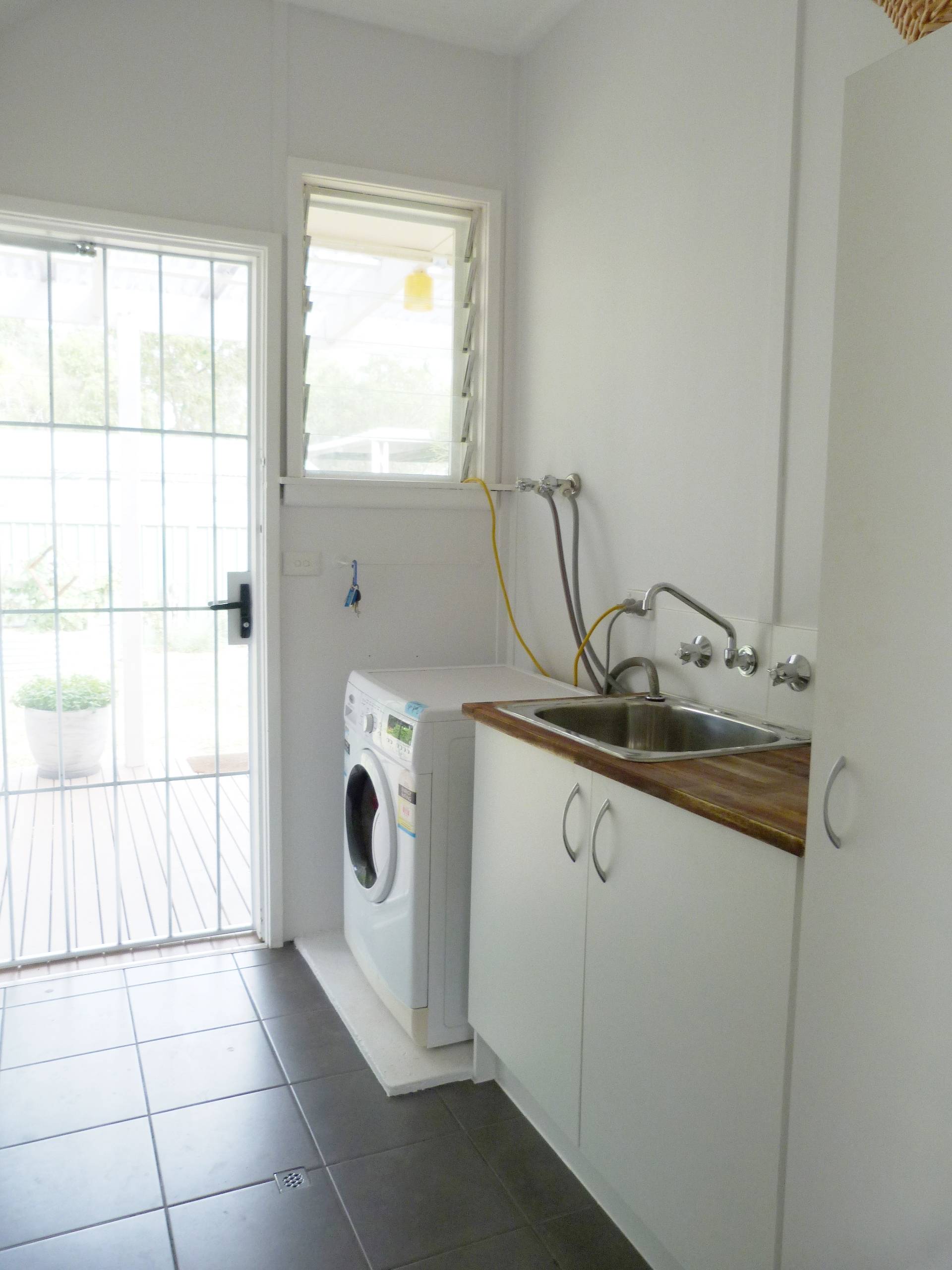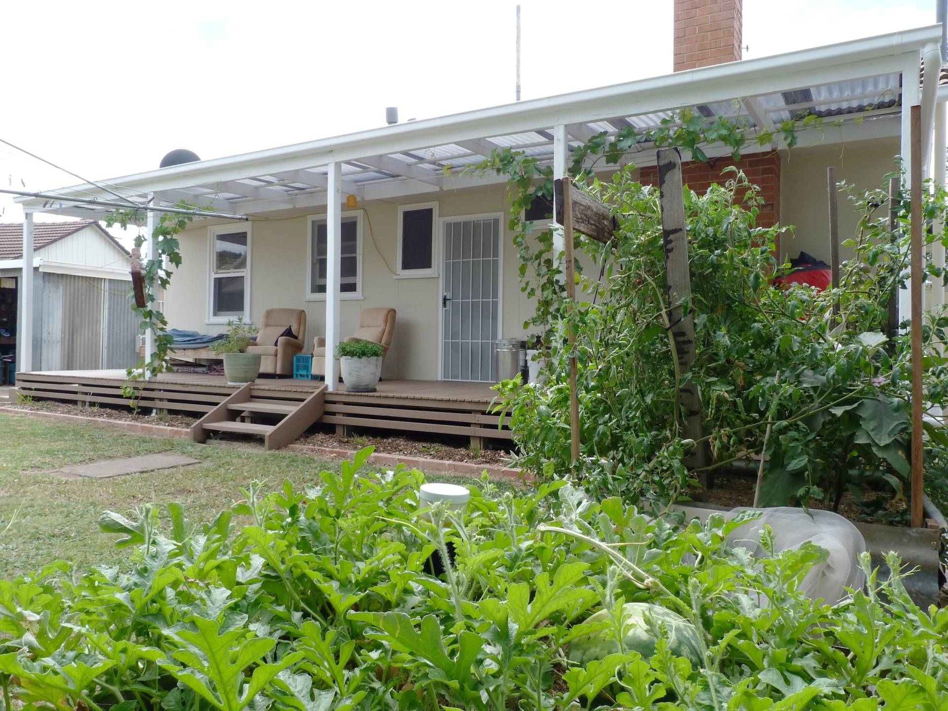 • THE FULL LENGTH BACK VERANDAH OVERLOOKS THE BACK GARDEN WHERE THE LOW WATER USE RAISED BEDS AND A CHOOK COOP IS TUCKED IN ONE CORNER.