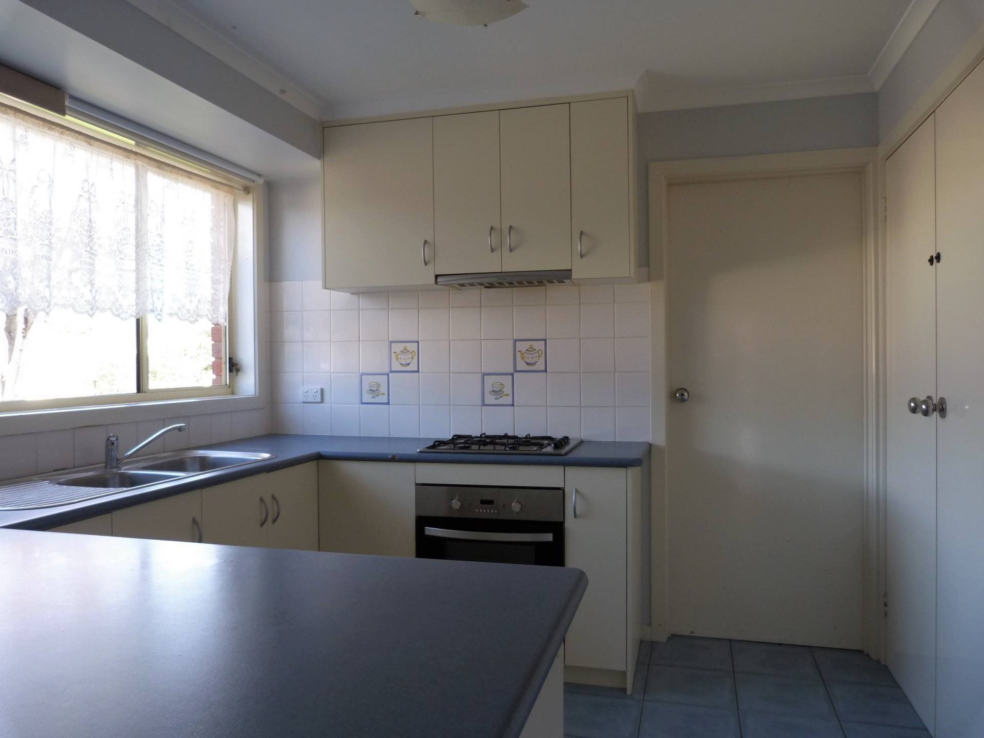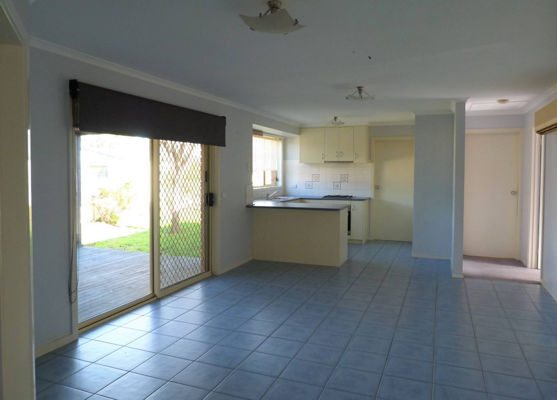 Tiled and spacious open plan kitchen/meals area.